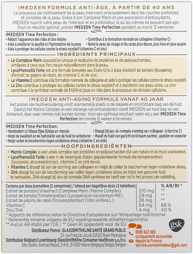 قرص جوانساز ایمدین تایم پرفکشن +40سال کمپانی GSkقرص جوانساز ایمدین (Imedeen) یک مکمل غذایی است که به طور خاص برای پشتیبانی از سلامت پوست و کاهش علائم پیری طراحی شده است. این محصول معمولاً برای افرادی که ۴۰ سال به بالا هستند، مناسب است و با هدف بهبود کیفیت پوست و حفظ زیبایی طبیعی فرموله میشود. در ادامه به جزئیات بیشتری درباره این محصول میپردازم: